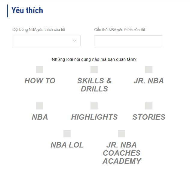 Bước 3: Nêu bật những sở thích của bản thân để JrNBA có thể hướng đúng nội dung hơn khi tiến hành cá nhân hóa chương trình.